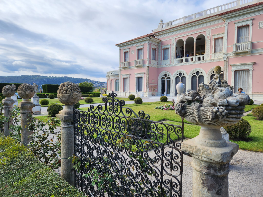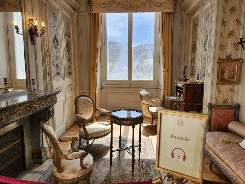 What is an alcove? In architecture, an alcove is a recess or a niche in the wall of a room that could serve as a sitting or storage area. I found two pretty alcoves inside the magnificent Villa Ephrussi de Rothschild, during a day trip to Saint Jean Cap Ferrat along the French Riviera. Villa Ephrussi is a mansion built between 1907-1912 for Baroness Beatrice de Rothschild of the famous Rothschild family of bankers. This gorgeous estate geographically sits on a promontory of an isthmus, allowing breathtaking views of the Mediterranean from both sides of the property. To accurately describe the charm of this rose-colored villa and the grandeur of its nine gardens will require a much higher level of knowledge and expertise in architecture, interior design and landscaping. So let me just talk about an interesting feature I found inside the house, which the guided tour referred to as “alcoves for post prandial conversations”. These are elegant sitting areas located in two corners of the dining room. The idea is that after sharing a meal with guests at the dining table, these alcoves would serve as separate areas to sit, linger, relax, and converse more privately with just one or two other friends.
